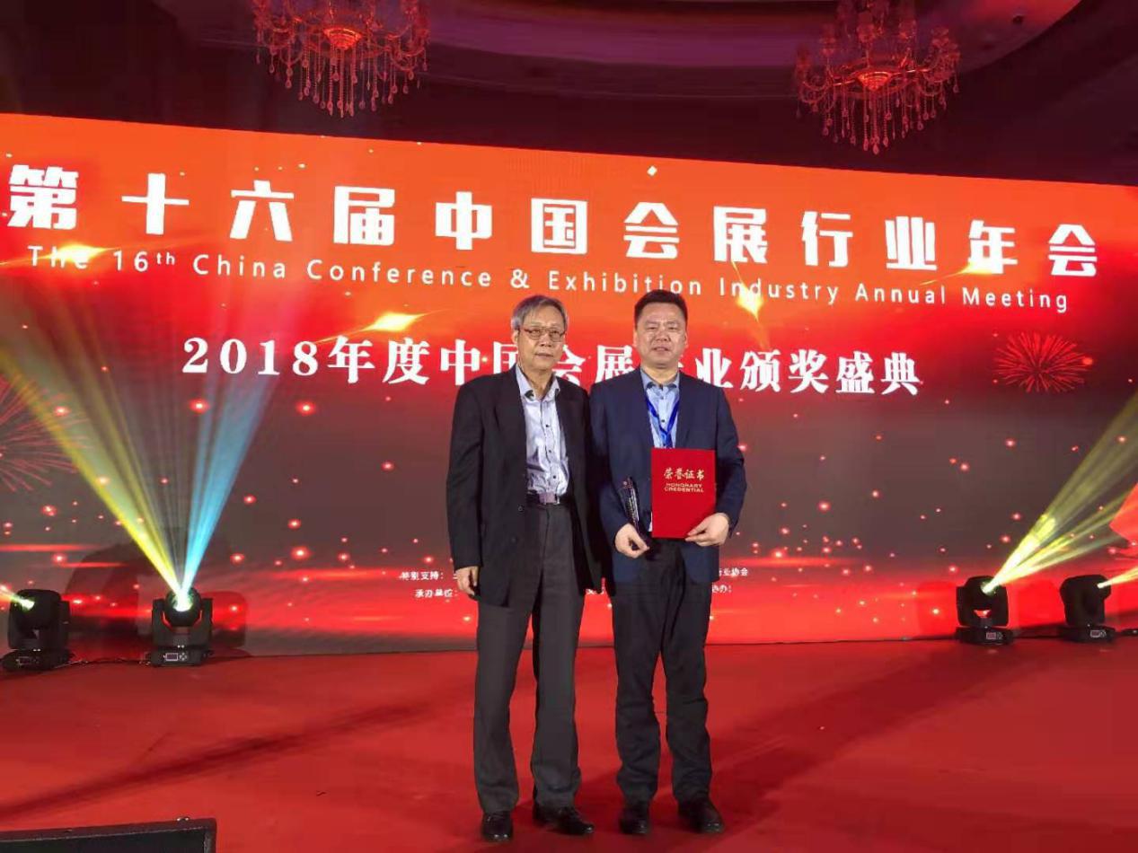 中國會展經濟研究會會長會長袁再青向杜磊董事長授獎